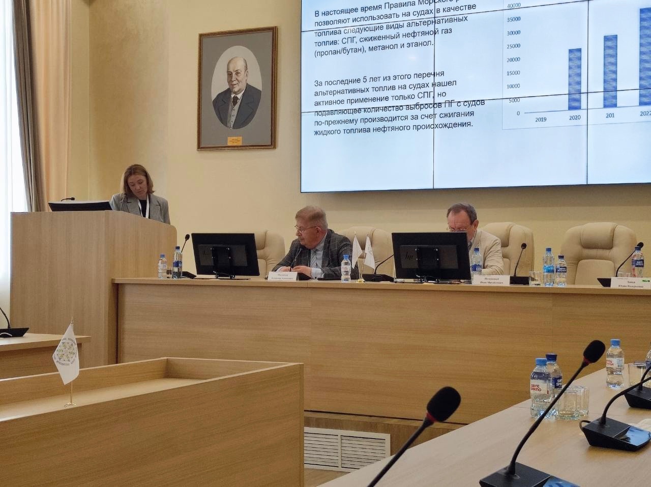 Темой выступления стало внедрение углеродного регулирования в рамках стратегии Международной морской организации (ИМО) и декарбонизация морского судоходства Российской Федерации.